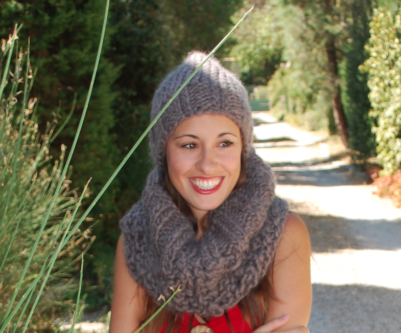 Je les ai tricoté en deux jours, c’est monté très vite grâce aux aiguilles taille 12 pour le bonnet et taille 15 pour le tour de cou.