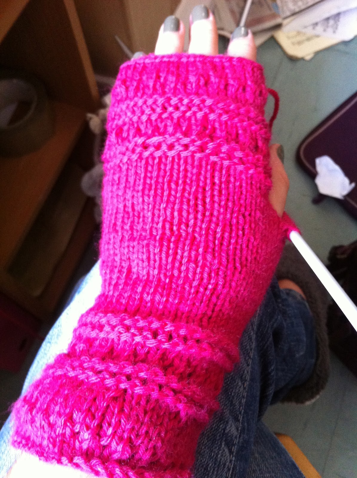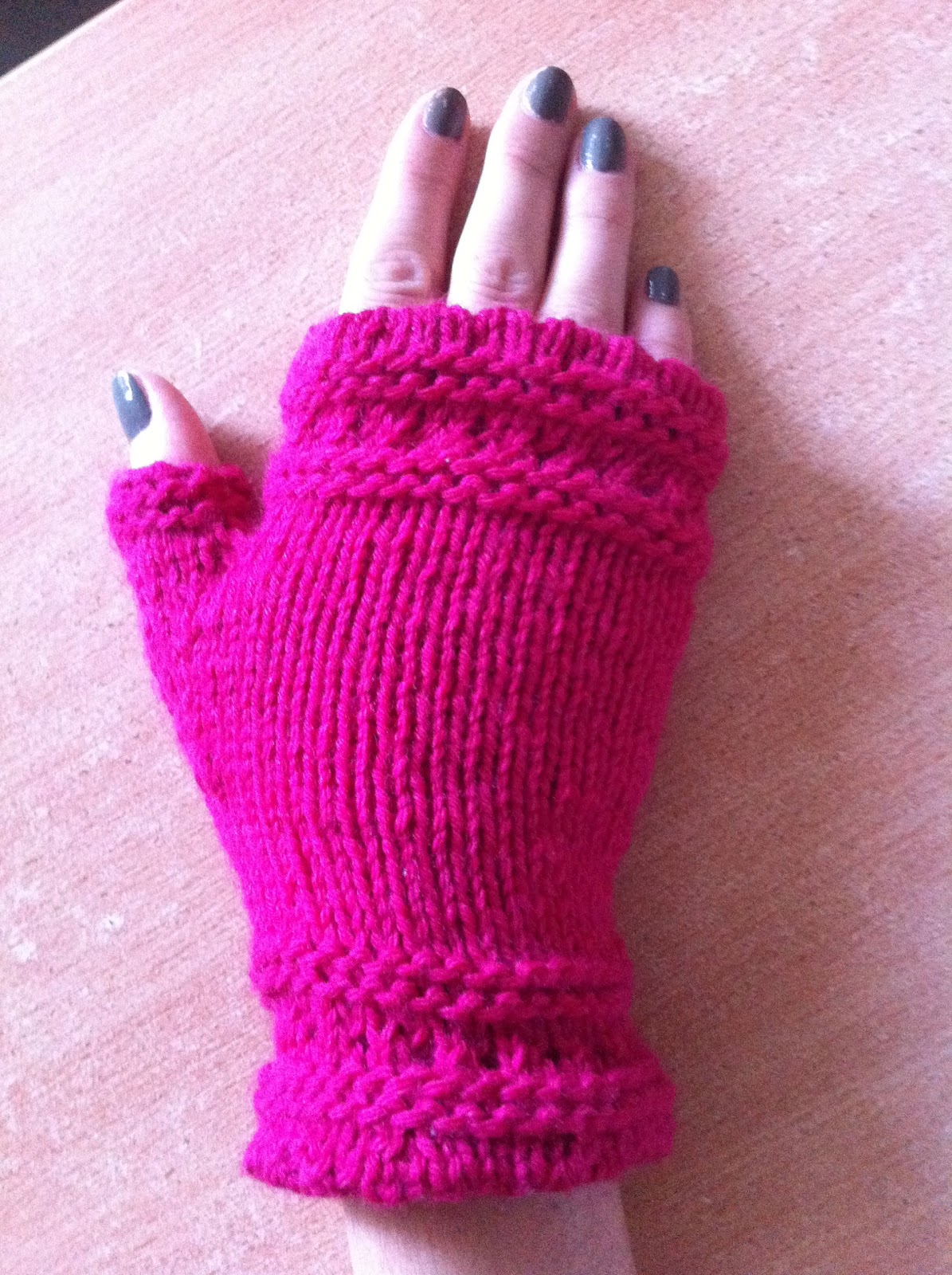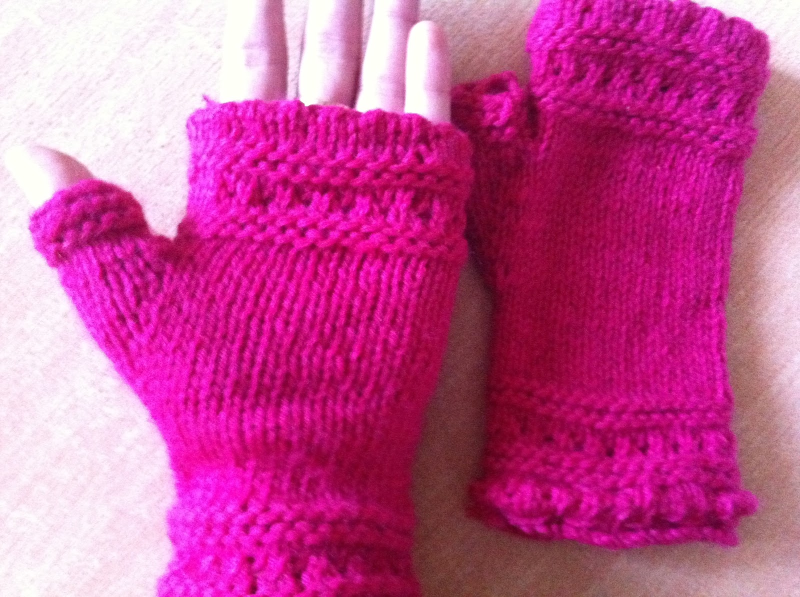 Tricotées avec une pelote de partner 3,5 de chez Phildar, couleur Bengale (pour que l’on n’utilise qu’une seule pelote, j’ai raccourci le modèle je n’ai monté que 10 rangs entre le motif dentelle et le pouce).