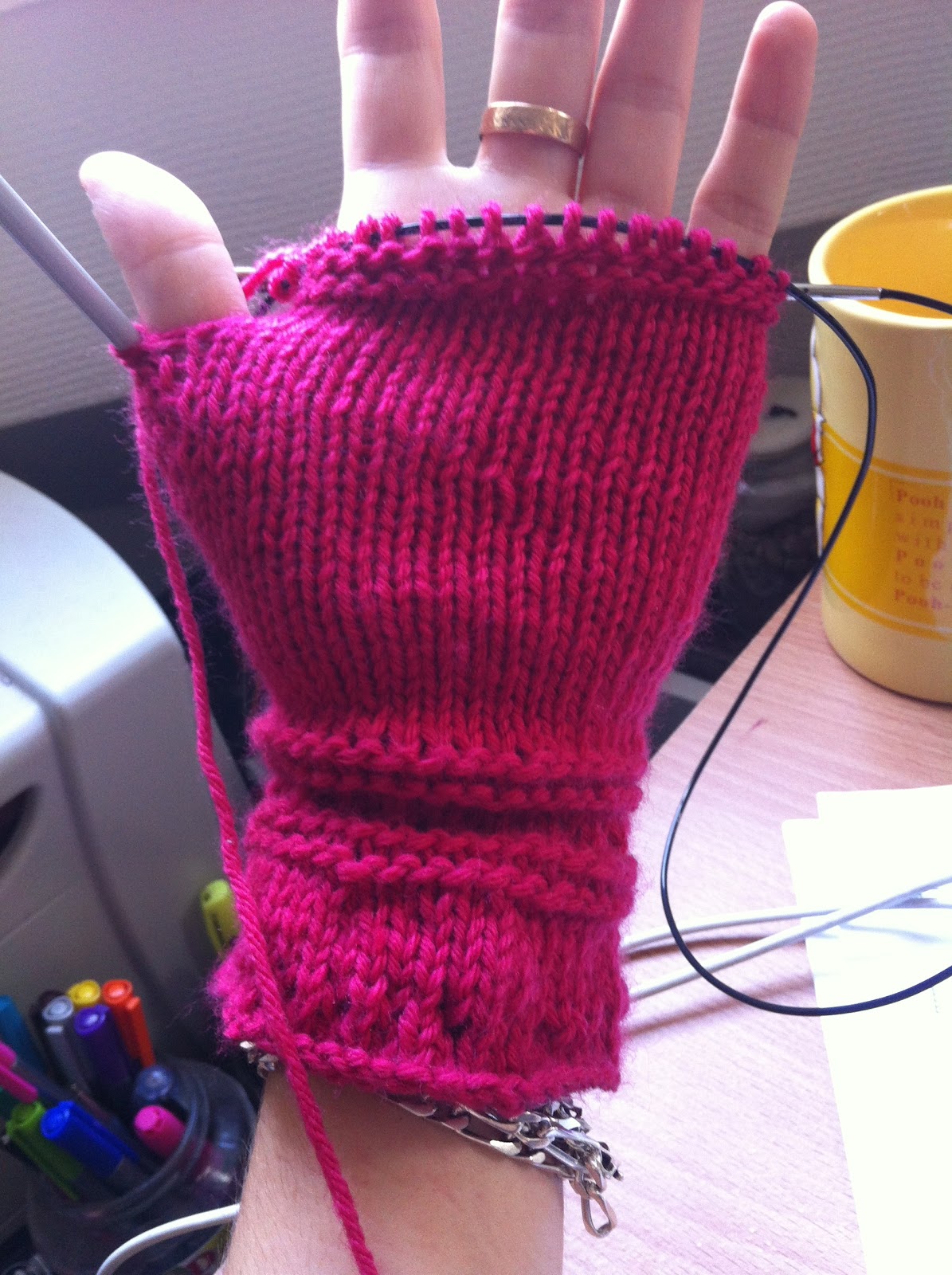 Elles sont vraiment simples et rapide à tricoter, toutefois, je recommande de noter le nombre de rangs que l’on fait car on s’y perd vite si on fait avec les cm… il faut quand même que les deux mains soient pareilles !!!