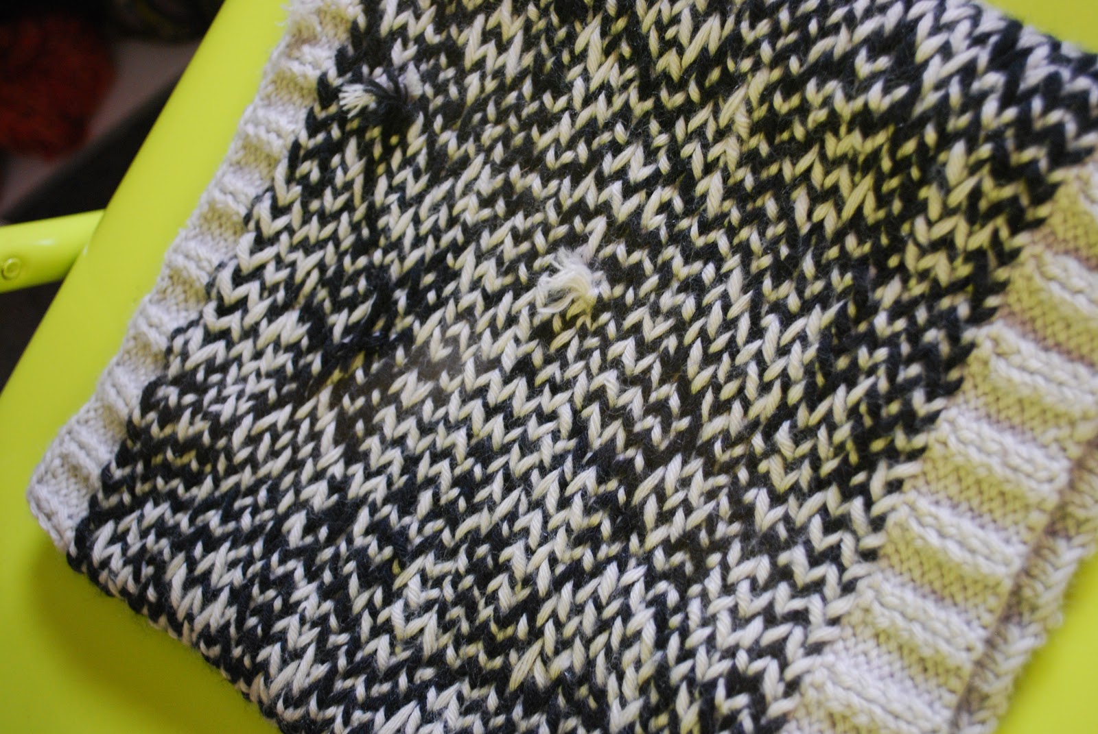 Super sympa ce snood, je suis en train de faire l’écharpe assortie, mais l’arrière de mon jacquard est beaucoup moins clean !!