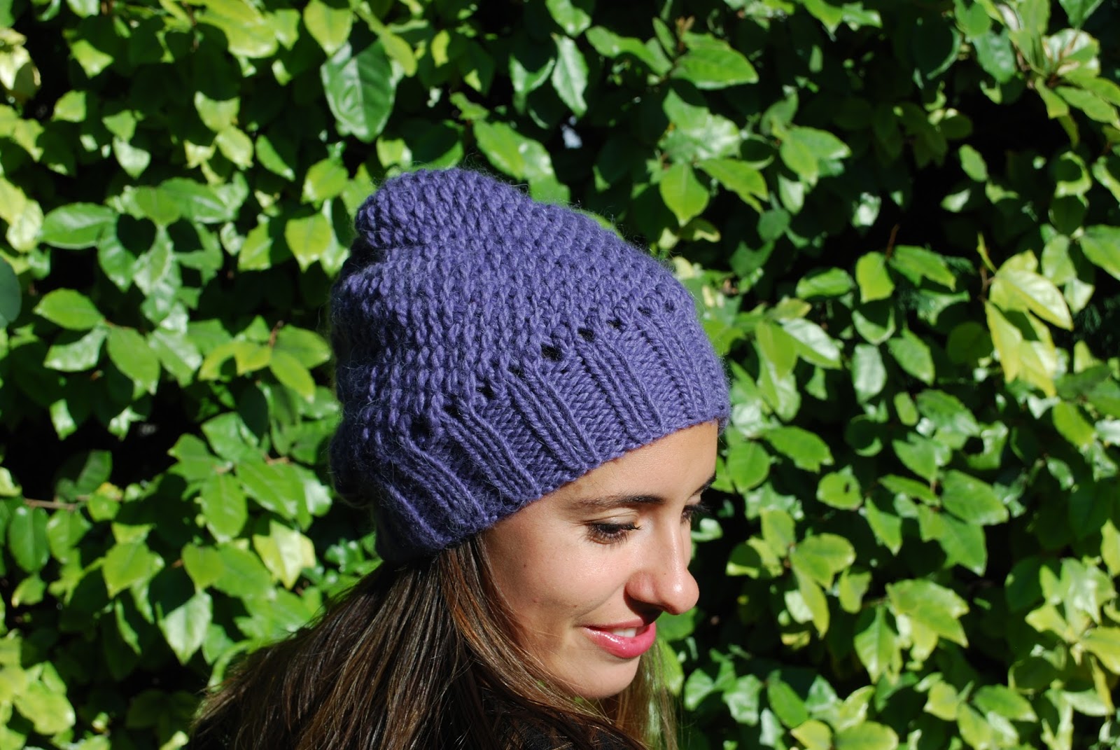 Ce bonnet est en fait un modèle que j’ai réalisé dans le cadre d’un cours de tricot que j’ai donné à une copine ! Elle a choisi elle-même l’ouvrage et je lui ai montré pas à pas comment le tricoter.