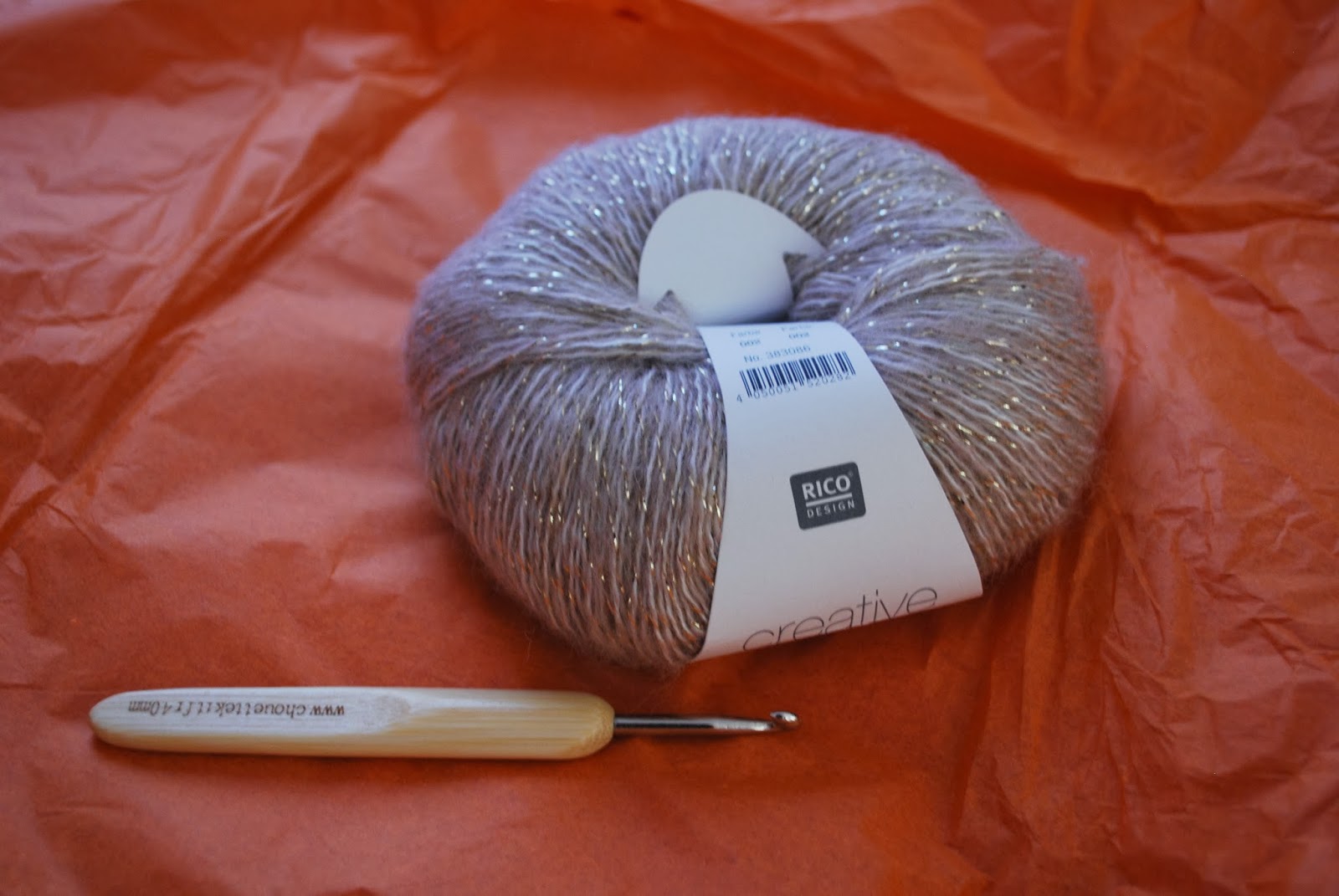 Au premier coup d’oeil, j’ai beaucoup aimé la couleur de la pelote, et je suis contente d’avoir un nouveau crochet avec l’embout en bois car je les trouve très agréables.