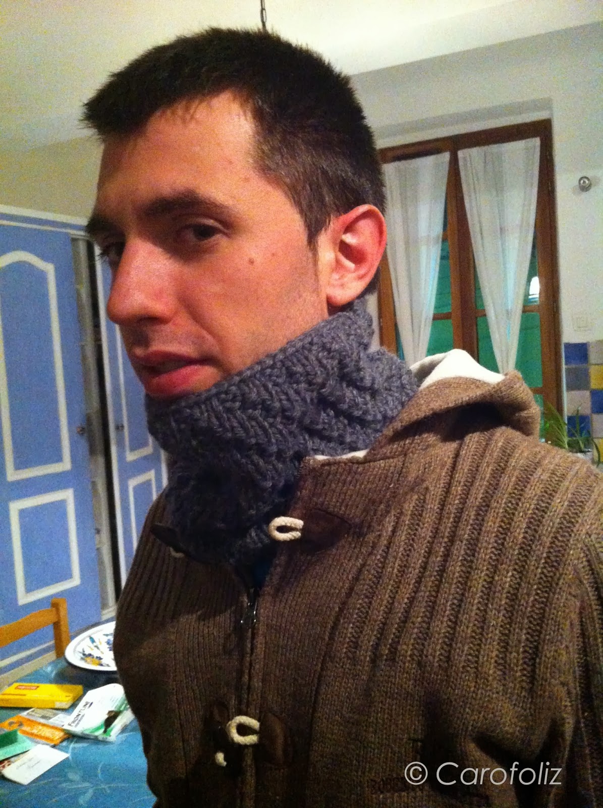 Je l’ai tricoté pour un ami et je trouve qu’il est parfait pour les hommes (merci à Romain alias Tesflex d’avoir posé, et d’ailleurs, n’hésitez d’ailleurs pas à aller voir son clip par ici).
