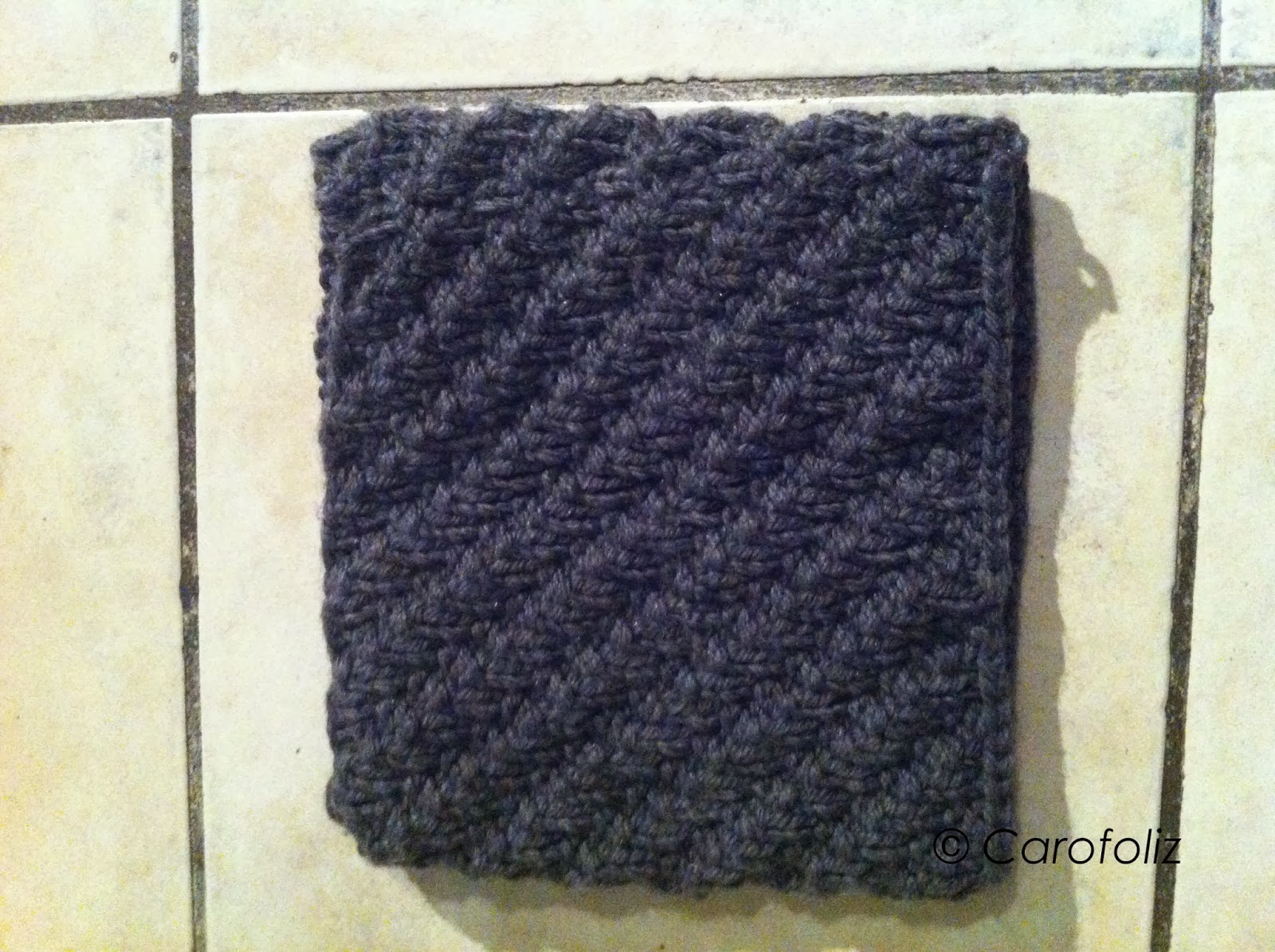 Avec la Rapido, c’est du rapide !! Je l’ai terminé en quelques heures, car le motif est assez simple, finalement ce sont des côtes décalées, il faut juste veiller à suivre le patron.
