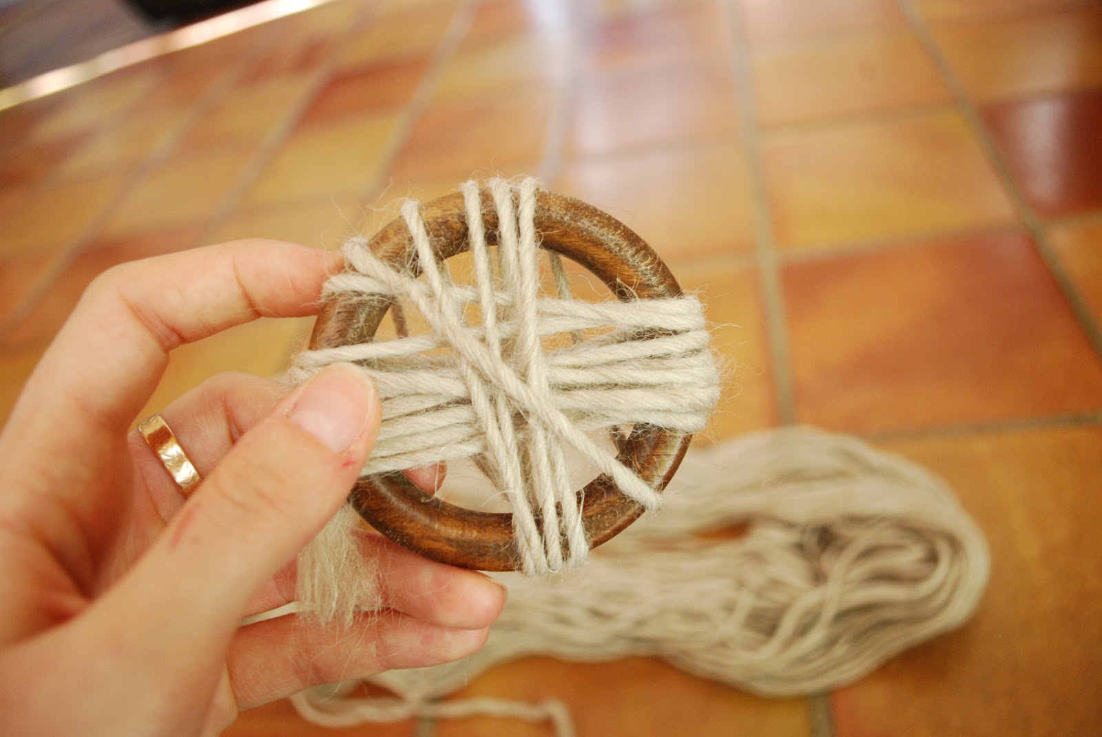 | 5) Enrouler le fil en formant une croix tout autour de l’anneau afin que l’on ne le voit plus |